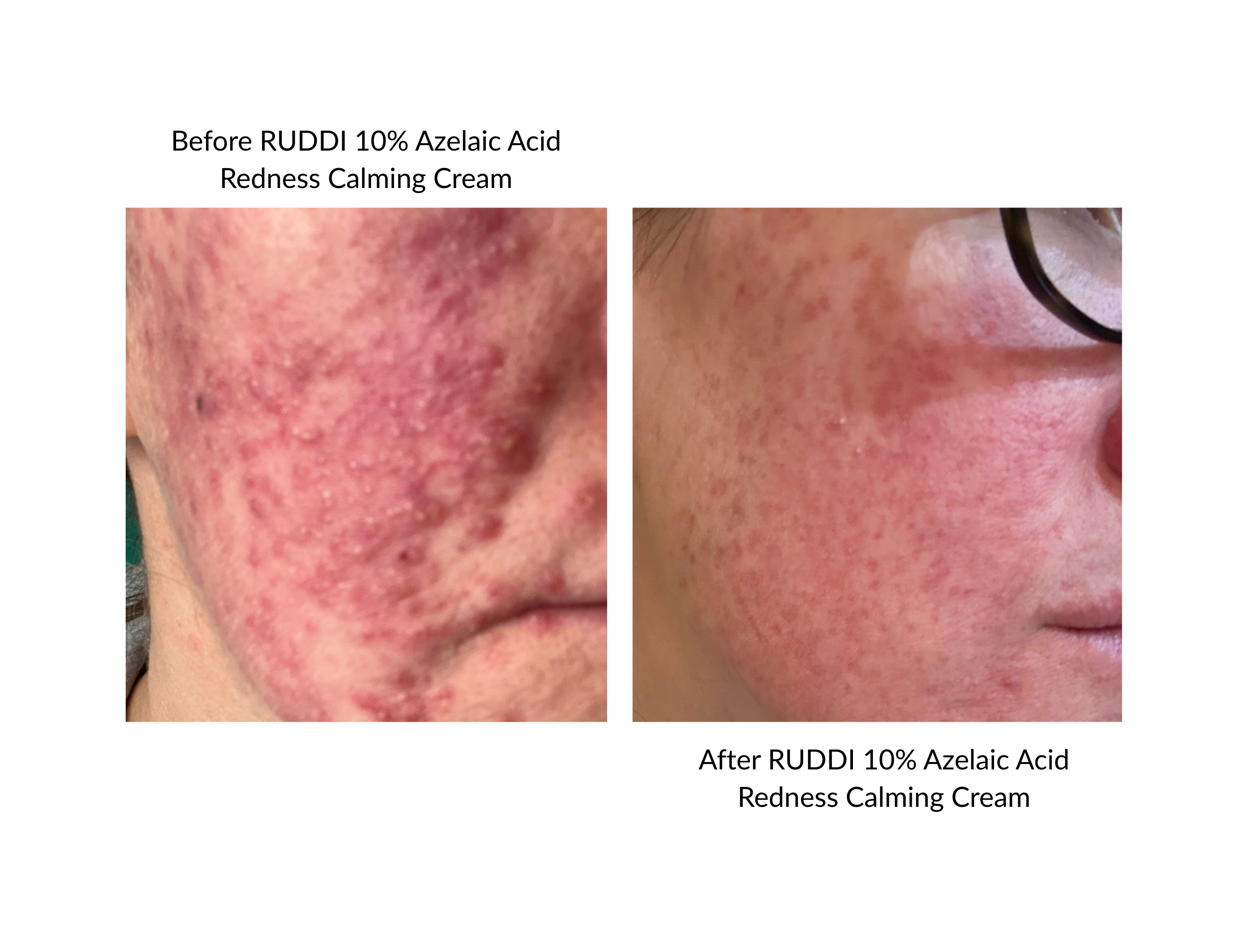 RUDDI 10% Azelaic Acid Redness Calming Cream is a lightweight, non-irritating daily treatment cream formulated specifically for redness-prone, sensitive, and rosacea-affected skin. With a powerful 10% concentration of Azelaic Acid, this formula works to visibly reduce redness, soothe inflammation, and support a clear, balanced complexion.